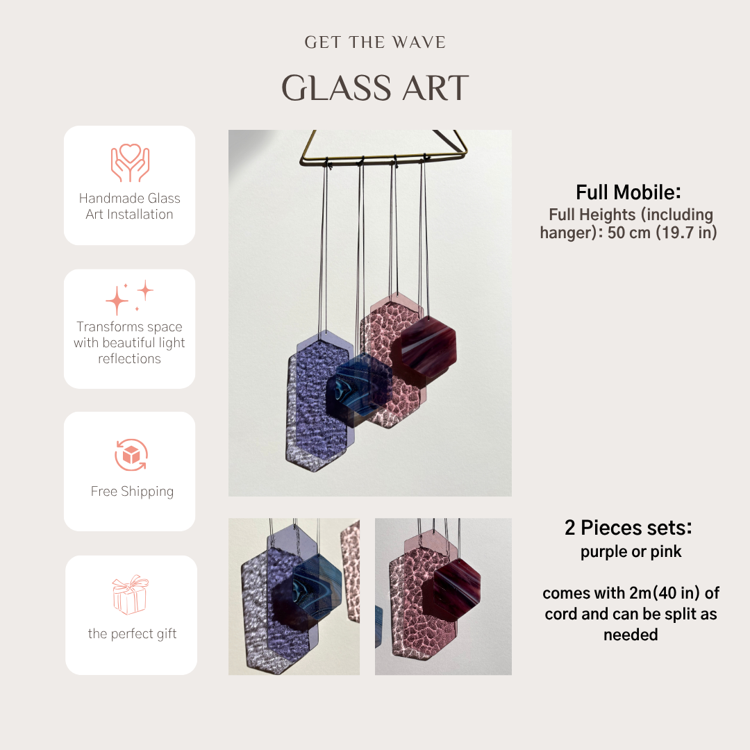 Verwandle dein Zuhause mit diesem bezaubernden Windspiel aus geometrischen Glasformen in lila und pink Tönen und erlebe ein einzigartiges Lichtspiel, das dein Fenster, deinen Balkon oder deinen Garten verschönert!