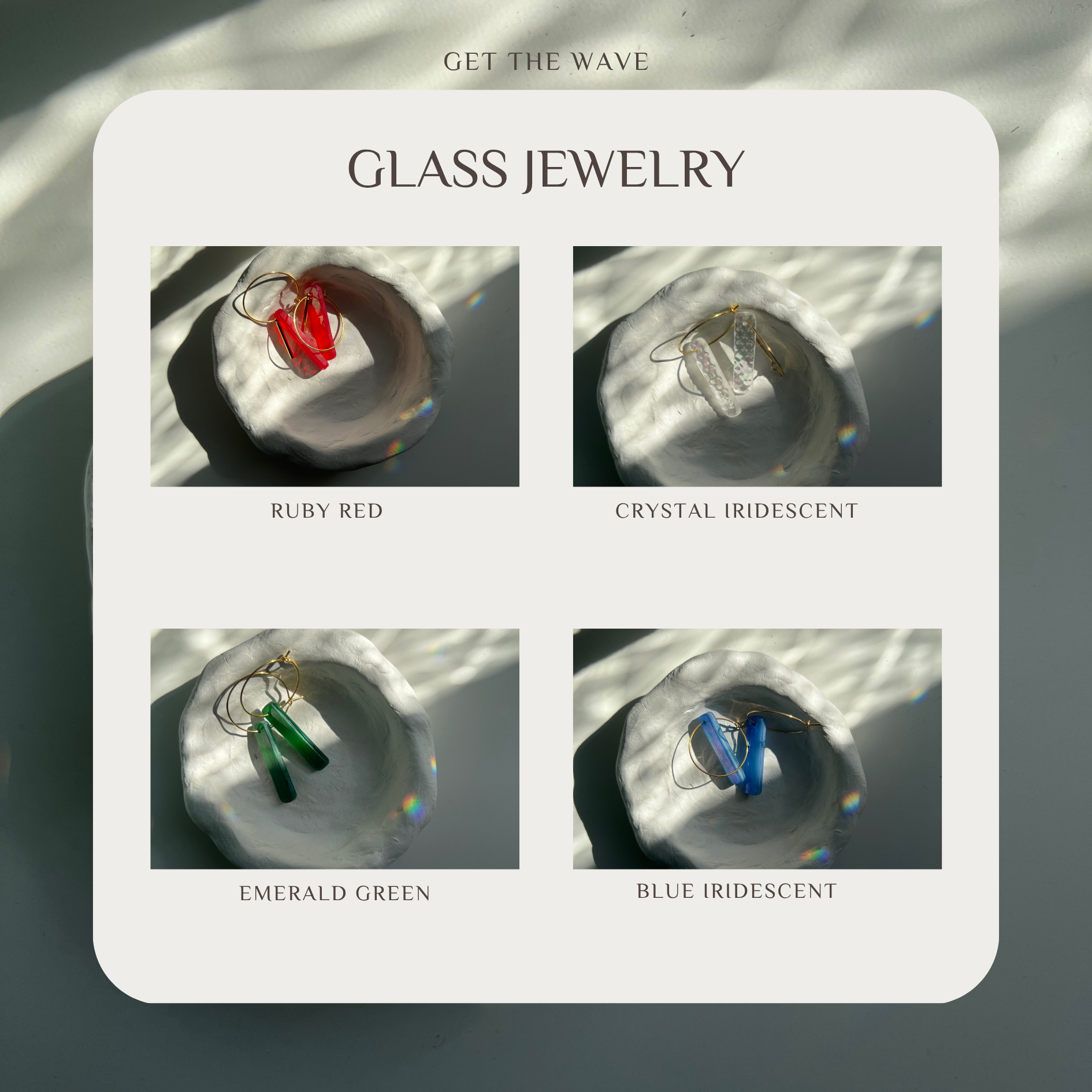 Jedes Schmuckstück ist durch die Beschaffenheit von Glas und die Handanfertigung ein einzigartiges Stück. Kleine Unebenheiten im Glas machen den einzigartigen Charakter des Glases aus.