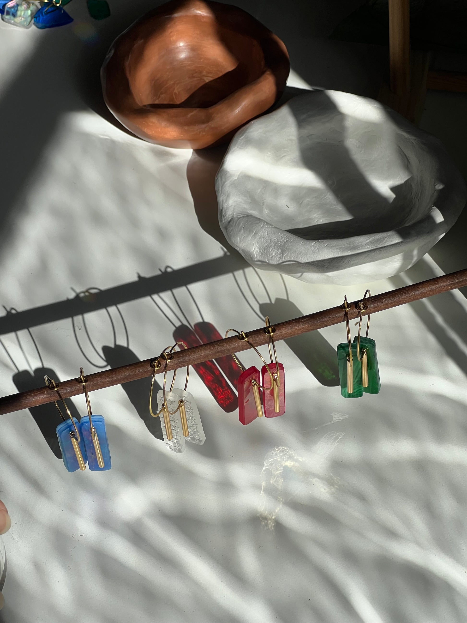 Inspiriert vom Spiel des Sonnenlichts, das durch buntes Glas fällt, fängt jedes Paar Ohrringe ein kleines Stück Licht und Farbe ein. Jedes Paar ist ein kleines Stück moderner Glaskunst, das die Sorgfalt und Hingabe seiner Herstellung in sich trägt.