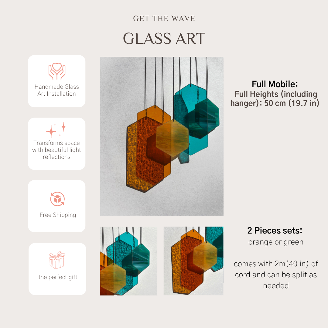 Diese einzigartigen Sonnenfänger aus geometrischen Formen in orange und grün Tönen sind das perfekte Highlight für dein Zuhause und eignen sich ideal als: