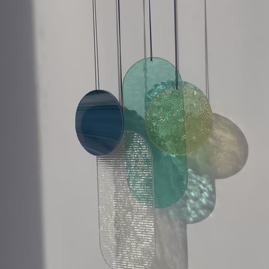 Die Ornamente funkeln wunderschön in der Sonne und werfen einen eindrucksvollen Schatten. Für den Wandschmuck werden verschiedene Glasarten verwendet, die sich in der Farbe und Oberflächenstruktur unterscheiden.